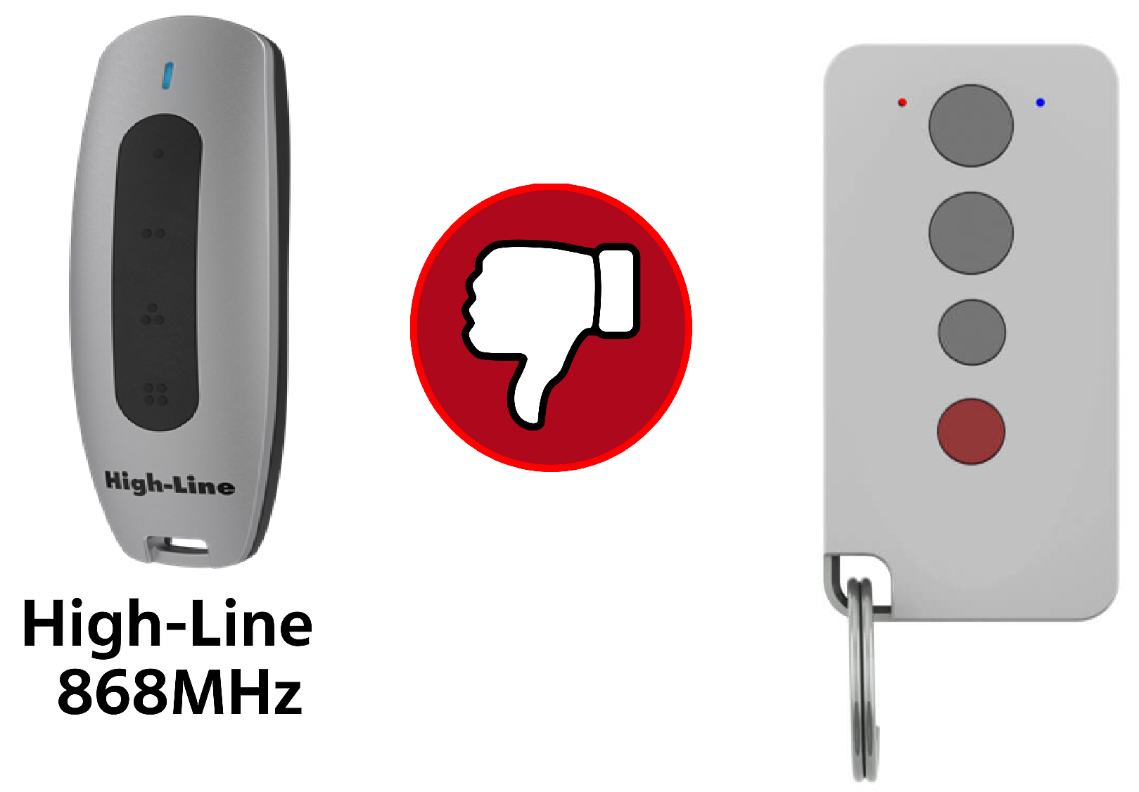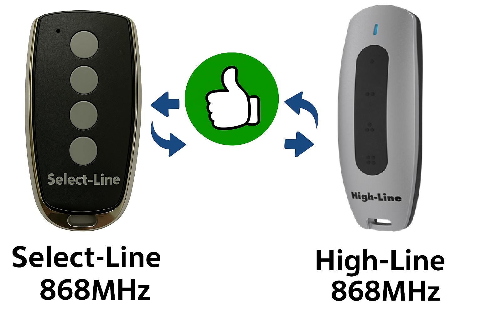 Deze handzender werkt niet op Select-Line aandrijvingen die zijn geleverd met witte handzenders. Deze oudere modellen zijn helaas niet meer leverbaar. In dat geval adviseren wij om een Select-Line ontvanger aan te sluiten, zodat u alsnog met deze nieuwe handzender kunt werken.